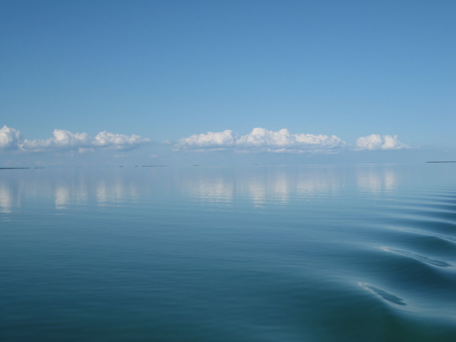 The pictures show from top to bottom: Moon rise at Sunset off Pumpkin Key, Underway in the Keys in tranquil water (note the almost indistinguishable horizon), Sunset in Lower Matecumbe with Hajaars boat, Gillen's house, Sunrise at Little Shark River.